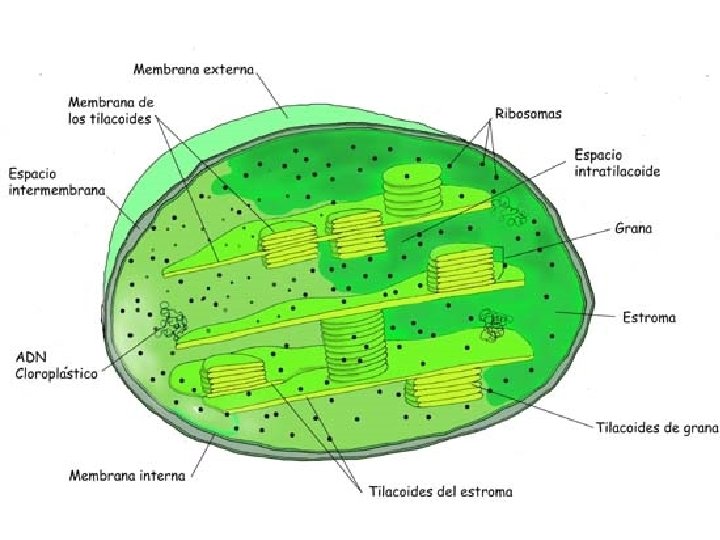 ¿Porqué son verdes las plantas? Las plantas poseen cloroplastos verdes La membrana tilacoides del cloroplasto está llena de pigmentos fotosintéticos (clorofilas, carotenoides).