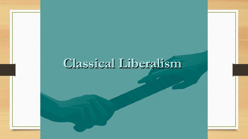 Classical Liberalism freedom of the individual and the role of government to protect that freedom liberating the individual from the oppressive restraints of feudalism and monarchial rule idea of the social contract = people give up some of their independence for safety and peace John Locke, Two Treatises on Government (1689) : 1) government’s duty is to protect peoples’ right to property; if it fails, they have the right to replace the government 2) divided power, rule of law, and consent of the people Characteristics of Classical Liberalism: 1) unrestrained behavior and motivations of individuals are usually positive 2) individual self-determination is more important than societal good 3) duty of government to protect and encourage economic development 4) reason is more important than faith or tradition