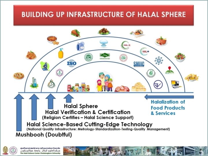 HALAL SCIENCE-BASED FOR THAILAND’S HALAL ECOSYSTEM INFRASTRUCTURE Branding of Halal Products & Mark HAL-Plus Halal Blockchain Halal Accredited by Thailand’s Authorized Islamic Organization : CICOT Halal Forensic Lab Halal Standardization by HAL-Q Raw materials Manufacturing Logistics preparation Products Raw materials Halal Standards Enactment &Enforcement Retailing