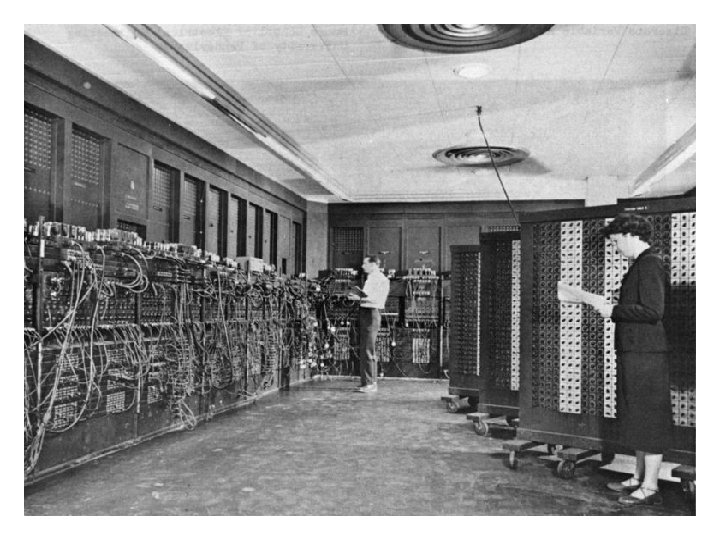 4. Electronic age • 1945 – ENIAC: - Electronic Numerical Integrator and Computer - 1 st fully electronic computer, used vacuum tubes - couldn’t store its programs - developers: John Mauchly, J. Prosper Eckert - funded by U. S. Army, used for military purposes • John von Neuman: binary system (0, 1) • stored-program computers: Manchester Mark 1, EDSAC, EDVAC • the first general-purpose computer for commercial use: UNIVAC (universal automatic computer)