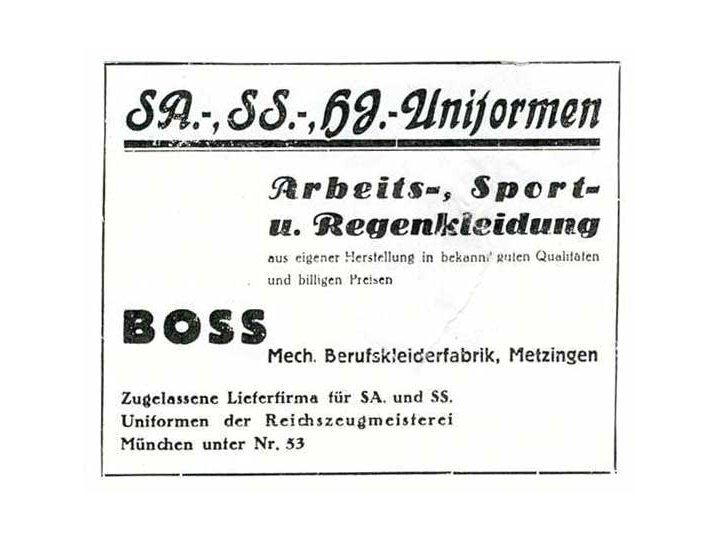 Hugo Ferdinand Boss (8 July 1885 - 9 august 1948) was the founder of the clothing company Hugo Boss. Had a Political Background with the Nazi Party. Hugo Boss started a clothing company in Metzingen. Due to the economic climate in Germany at that time he was forced to bankruptcy, in 1931 he came to an agreement