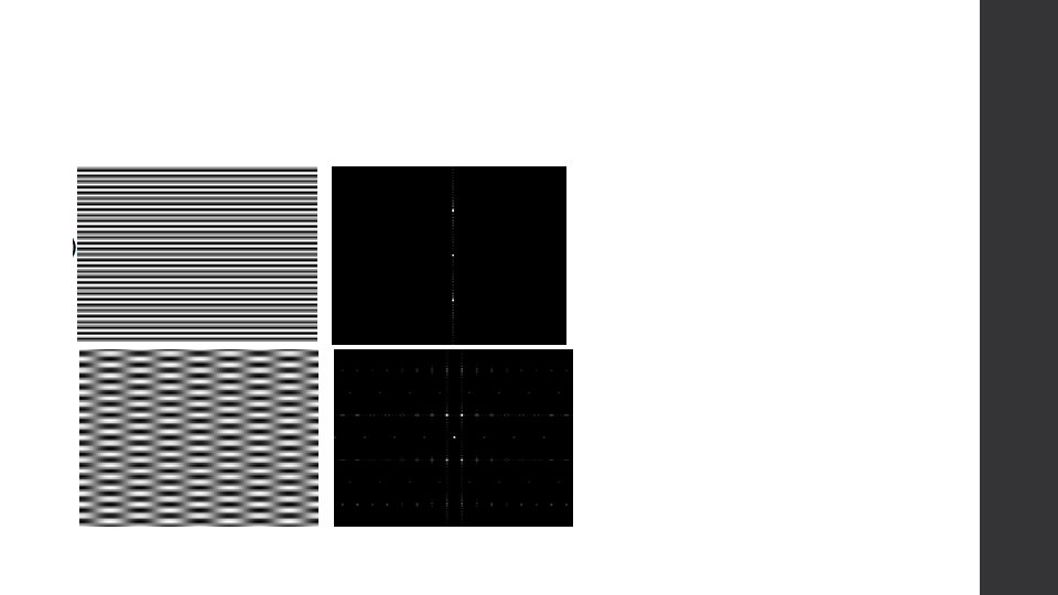 More examples Spatial Frequency • Repeatation makes perfect periodic signal • Therefore perfect result perpendicular to it