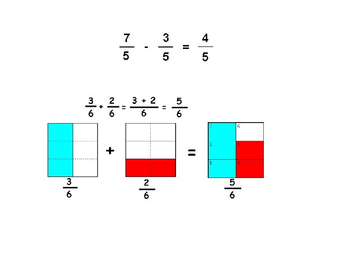 SUMA Y RESTA DE FRACCIONES • Suma : Sumo fracciones con el mismo denominador. Resta : Resto fracciones con el mismo denominador.