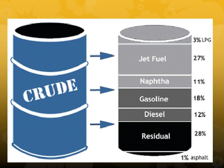 Petroleum Refineries An important source of hydrocarbons is petroleum (crude oil). Petroleum products include gasoline, jet fuel, diesel fuel, lubricating oils, and asphalt. Crude oil contains hundreds of different hydrocarbon compounds.