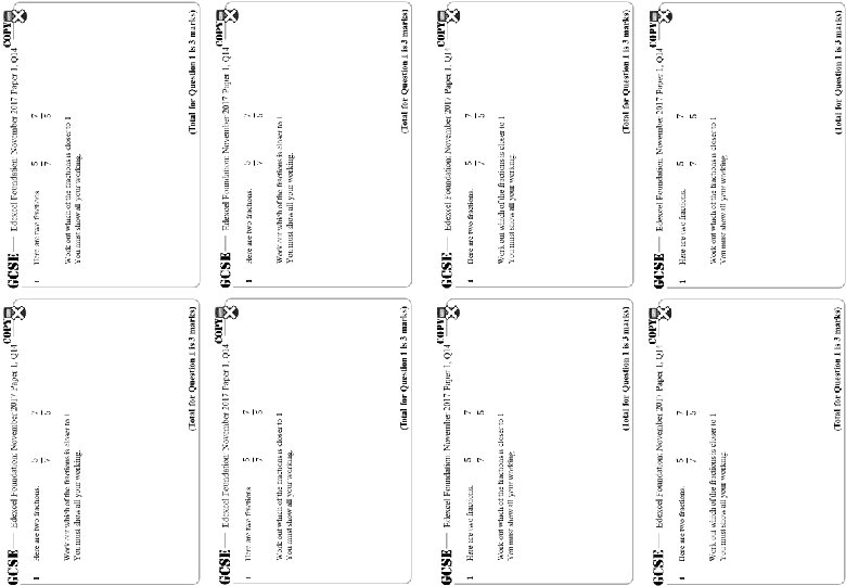 Fractions – Comparing – Foundation – GCSE Questions These questions are the same format as previous GCSE exams. COPY means they use the exact same numbers as the original GCSE question. Otherwise, they are clone questions using different numbers. The worksheets are provided in a variety of sizes.