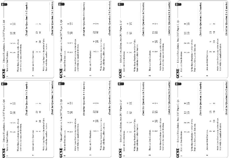 GCSE 1 Edexcel Foundation: June 2017 Paper 2, Q 4 Here are four fractions. Write these fractions in order of size. Start with the smallest fraction. (Total for Question 1 is 2 marks) 2 Here are four fractions. Write these fractions in order of size. Start with the smallest fraction. (Total for Question 2 is 2 marks)