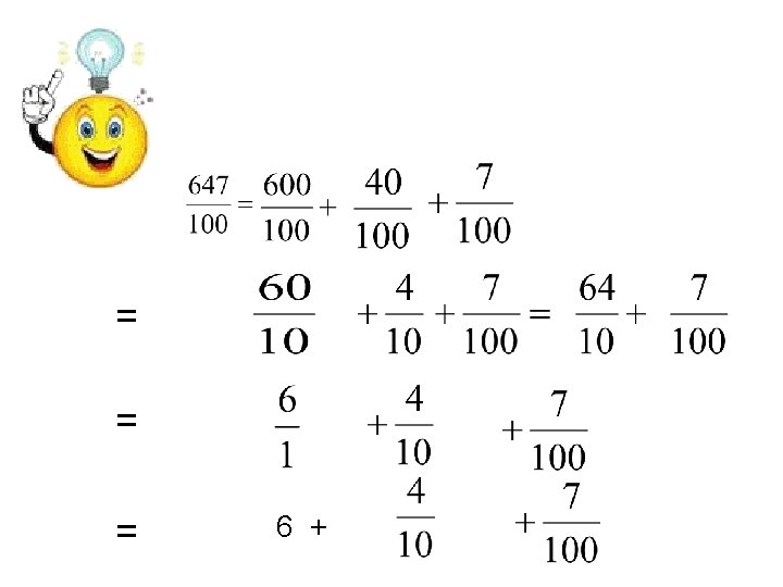 Sur ton ardoise, écris les fractions égales à celles-ci. J’enlève le même nombre de 0 en haut et en bas! …. . +