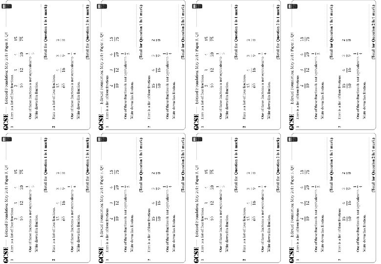 GCSE 1 Edexcel Foundation: May 2018 Paper 3, Q 4 ÷ 2 ÷ 3 ÷ 4 ÷ 15 (Total for Question 1 is 1 mark) 2 ÷ 15 ÷ 4 ÷ 3 ÷ 2 (Total for Question 2 is 1 mark)