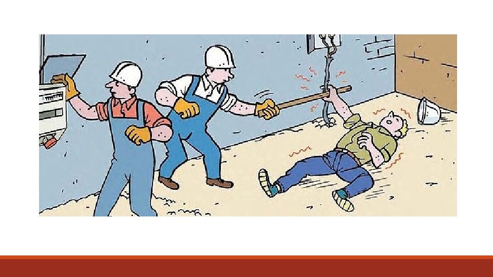 ACCIONES A TOMAR ANTE UNA ELECTROCUCIÓN INMINENTE 1. Desconectar la corriente, en la llave general los generales. 2. Si no se puede actuar sobre los llaves o interruptores, aislarse debidamente (usando calzado y guantes de goma, o subiéndose sobre una tabla). 3. Si el accidentado queda unido al conductor "pegado”, separándole la víctima por medio de un palo o bastón de madera. 4. En alta tensión, suprimir la corriente a ambos lados de la víctima, pues si no, su rescate será muy peligroso. 5. Si el accidentado hubiera quedado suspendido a cierta altura del suelo, prever su caída, colocando debajo colchones, mantas o una lona. 6. Tener presente que el electrocutado es un conductor eléctrico mientras a través de él pase la corriente.