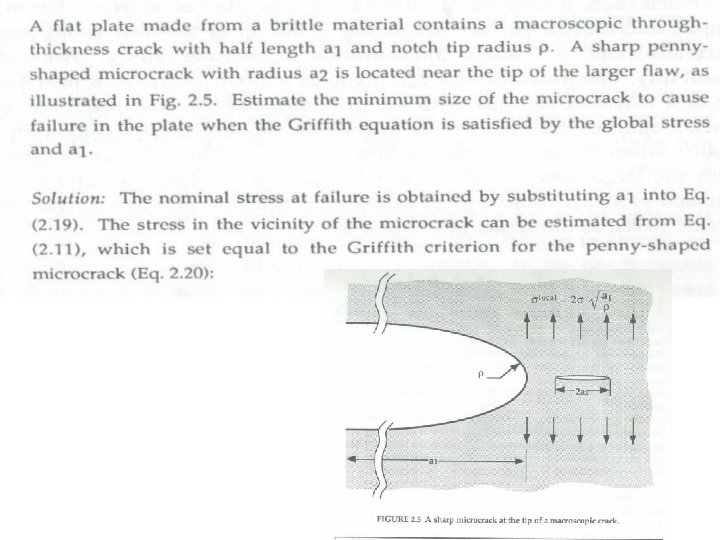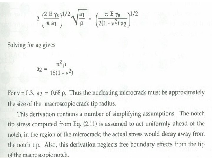 Fracture stress for realistic material (contd. ) When a >> b eq. 2. 10 becomes (2. 11) For a sharp crack, a >>> b, and stress at the crack tip tends to Assuming that for a metal, plastic deformation is zero and the sharpest crack may have root radius as atomic spacing then the stress is given by (2. 12) When far end stress reaches fracture stress , crack propagates and the stress at A reaches cohesive stress then using eq. 2. 7 (2. 13) This would