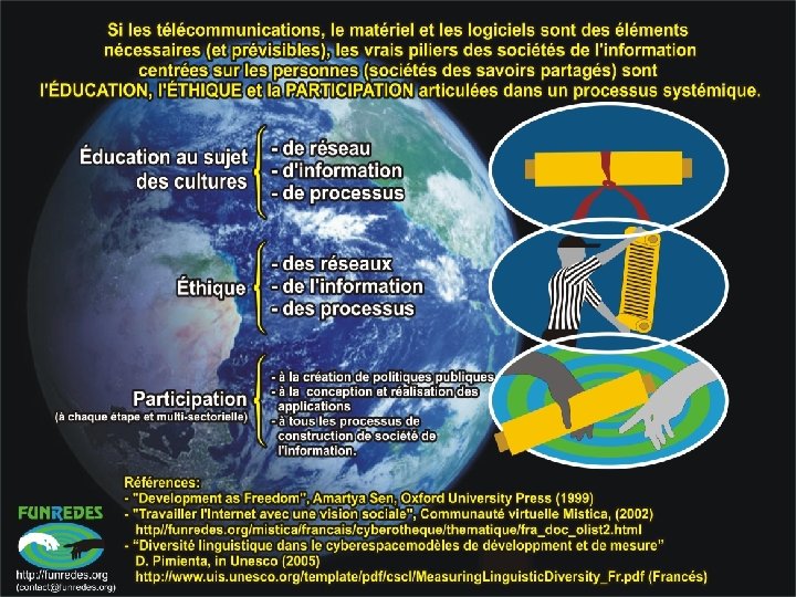 ¿EN INFOCULTURE Y/O CULTURA DE RED? • Alphabétisation numérique/informationelle (alpha. BITisation) • Coopération • Approches multisectorielles • Participation