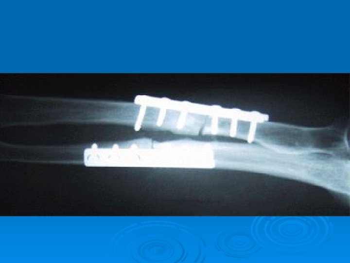 Treatment Ø External fixation methods l l l plaster and fiberglass cast-braces splints Ø Internal fixation methods l l l metal plates Pins screws