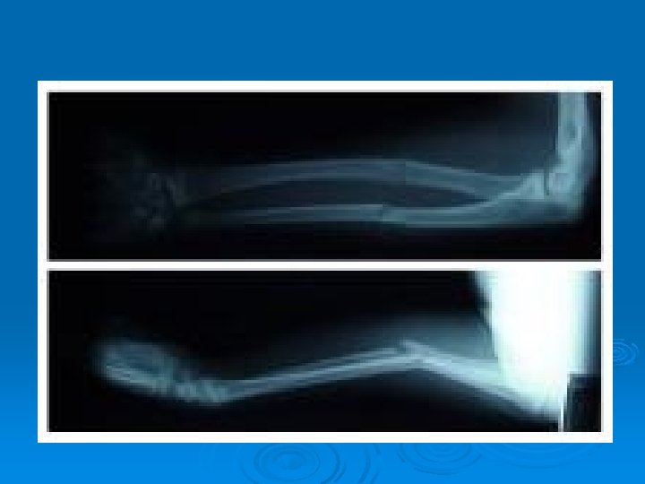 Causes of Radius and Ulna Fractures Ø Falling on outstretched arm Ø Direct blow Ø Mountain biking Ø Skateboarding Ø Trauma Ø Automobile accidents Ø Child abuse