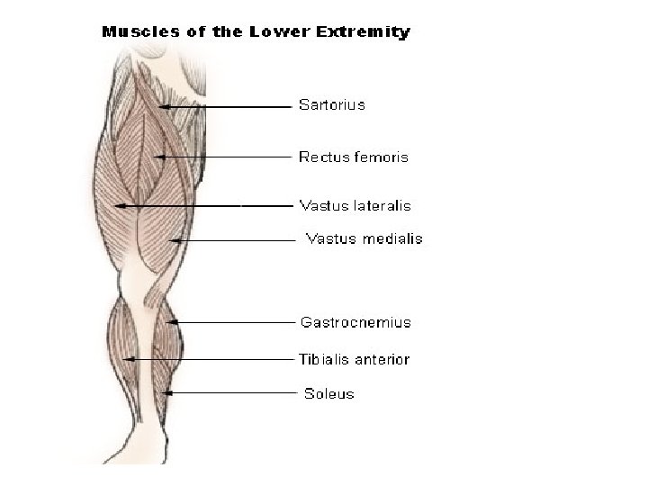 Thigh muscles • Anterior compartment: quadriceps femoris, iliopsoas, sartorius. • Medial compartment: gracilis, adductor longus, brevis, magnus, obturator externus. • Posterior compartment: biceps femoris, semitendinosus, semimembranosus. • Because of the large volume, compartment syndrome is much less common.