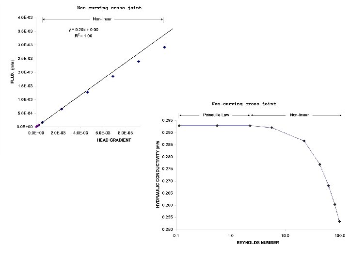 Apparent K as a function of hydraulic gradient t=1 Darcy-Forchheimer Equation • Gradients could be higher locally • Expect leveling at higher gradient?