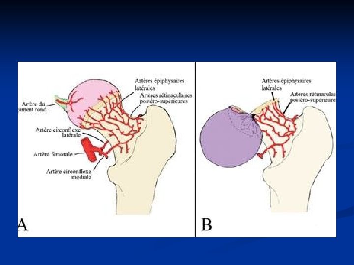 -RAPPEL ANATOMIQUE : -Forme : cylindre aplati d’AV en AR. ô cervico-diaphysaire 130°(frontal) , antéversion de 10°(horizontal). -Vascularisation : de type terminale (déplacement++ nécrose) , assurée par les circonflexes ( antérieure = 3/4 sup-Int de la tète fémorale , postérieure =1/4 inf-Int , l ’A du ligt rond=accessoire)