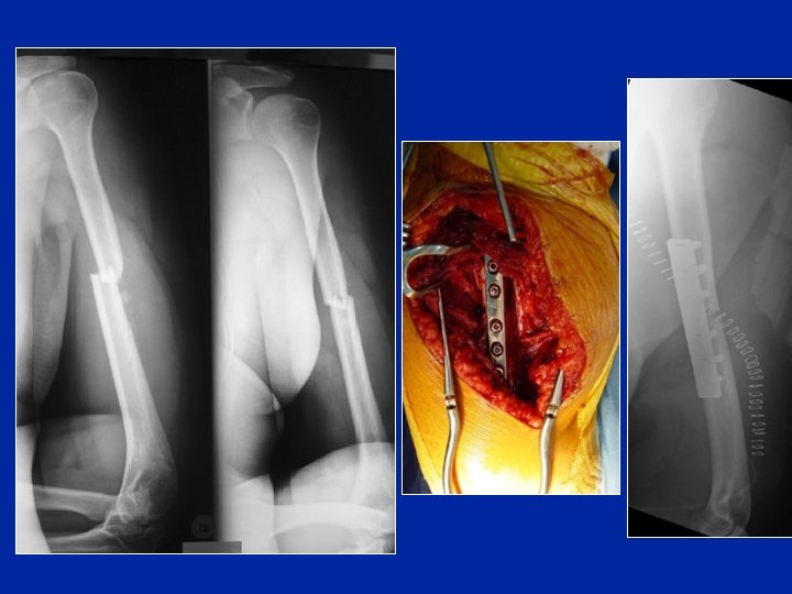 Évolution des fractures de l’humérus • Les cals vicieux sont le fait du traitement orthopédique (déplacements secondaires) • Les pseudarthroses se voient surtout après les ostéosynthèses ouvertes • Paralysies radiales (surveillance EMG)