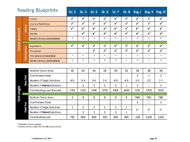 Fact or Fib? 1. In the first reporting category (Understanding Across Genres), the 6 th, 7 th, and 8 th grade reading tests contain the same amount of questions. 2. The reading test for grades 6 -8 contains one paired selection. 3. The test for grades 6 -8 contain the same amount of questions. 4. Grades 6 -8 contain the same amount of single reading selections. 5. Drama is not tested in grade 6 reading, but it is tested in grades 7 and 8. 6. The grade 8 reading test contains more questions in reporting category 3 (Comprehension and Analysis of Informational Texts).