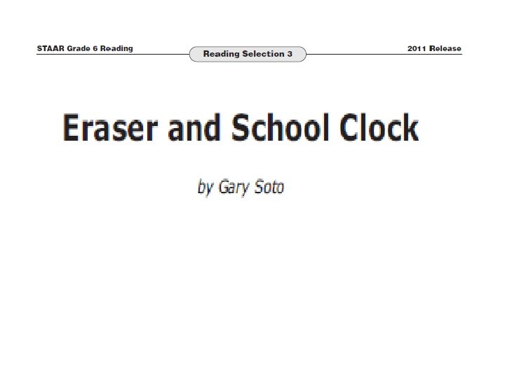 Unpacking the 6 th Grade Reading STAAR Released Items Eligible Texas Essential Knowledge and Skills Questions from Texas Education Agency Student Assessment Division Fall 2010