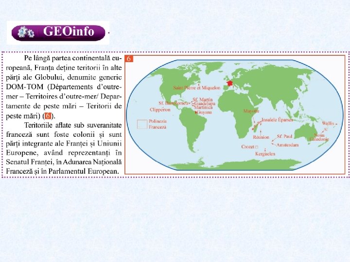 FRANȚA Poziția geografică: în Europa Vestică Vecini: N: Marea Mănecii, Marea Nordului S: Spania, Andorra, Marea Mediterană E: Belgia, Luxemburg, Germania, Elveția, Italia, Monaco V: Oceanul Atlantic Este a treia țară din Europa după numărul de locuitori, iar ca suprafață este a doua. Identificați țările cu populație și suprafață mai mari decât populația și suprafața Franței! Insule care aparțin Franței: Corsica, Reunion, Guyana Franceză etc.