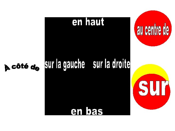 une ligne des lignes C’est It is Ce n’est pas It isn’t Il y a There is une spirale des spirales une étoile des étoiles un cercle des cercles un carré blanc/he/cs/hes noir/e/s/es jaune/s rouge/s des carrés Il n’y a pas There isn’t Il a / elle a It has Il n’a pas / elle n’a pas It hasn’t got un triangle des triangles un point des points un oval des ovaux un oeil des yeux un rectangle des rectangles vert/e/s/es bleu/e/s/es gris/e/es marron/s