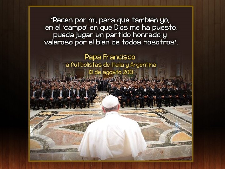 “FRANCISCO” tiene única y exclusivamente una finalidad educativa e informativa. TEXTOS: Algunas respuestas del papa Francisco en entrevista con Antonio Spadaro, S. J. FUENTES: Hd. clarín. com, Facebook, News. va, Flickr, Lastampa. it, Infobae. com, l´Osservatore Romano, Tumblr. com IMÁGENES: EFE, AP, AFP, Reuters, Getty Images. Todas proceden de Internet. Mi reconocimiento a sus autores. MÚSICA: Johann Sebastian Bach – Allegro Classical Sampler – Philarmonia Slavonia REALIZACIÓN: Ed. Pe. Mol