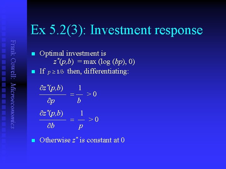 Ex 5. 2(3): Investment response Frank Cowell: Microeconomics z* p