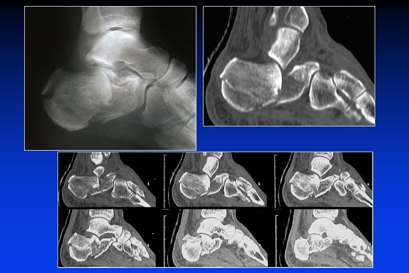 Rx grafie: Incidenza assiale retro-tibiale o dorsoplantare Sustentaculum tali Calcagno “in A. P. ” Fratture talamiche - parziali - totali