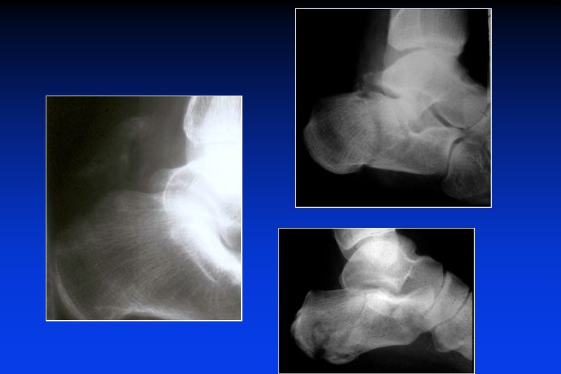 Fratture del calcagno Caratteristiche • Età media : 4 O anni • Uomini : 87 % • Trauma : Sports : 75 % • Lavoro : 15 % (cadute : 45%) • Fratt. esposte : 3 % • Lesioni associate : 30 % M. I. controlaterale, M. I. omolaterale 6 % Rachide, politrauma. 3 %