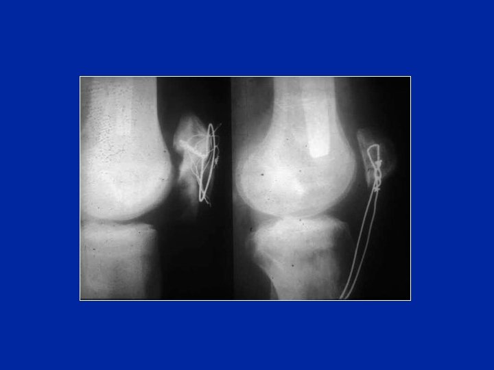 23 patella Magna post-traumatiche • 20 uomini • Età media : 23, 5 anni (19 a 60) • Trattamento iniziale : 16 cerchiaggi, 1 avvitamento Controllo medio: 8 anni (4 a 18)