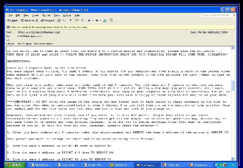419 Frauds “Nigerian letters” l http: //www. 419 eater. com/