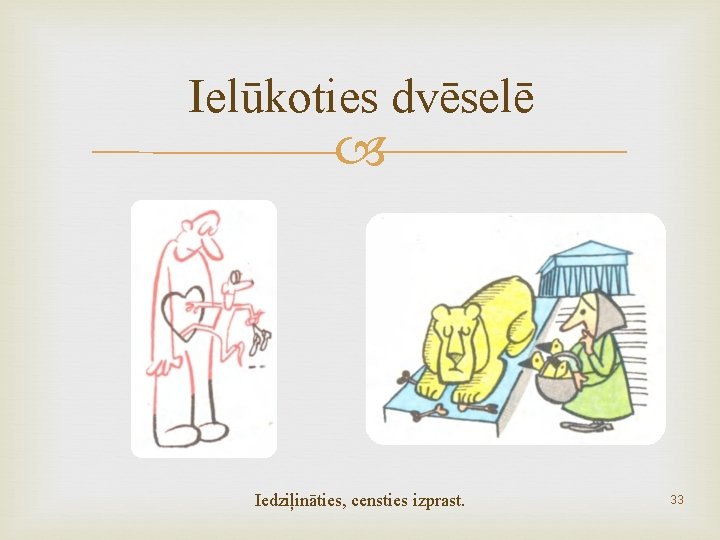 Ielūkoties dvēselē Iedziļināties, censties izprast. 33