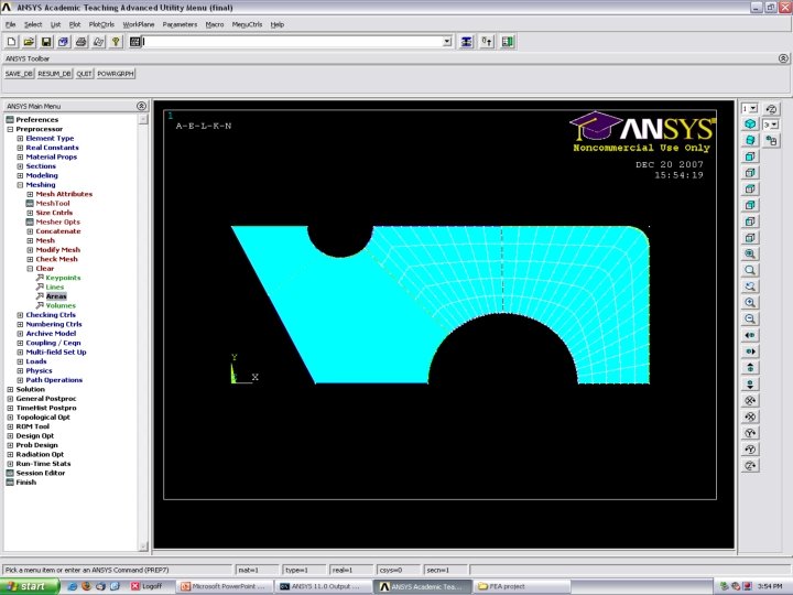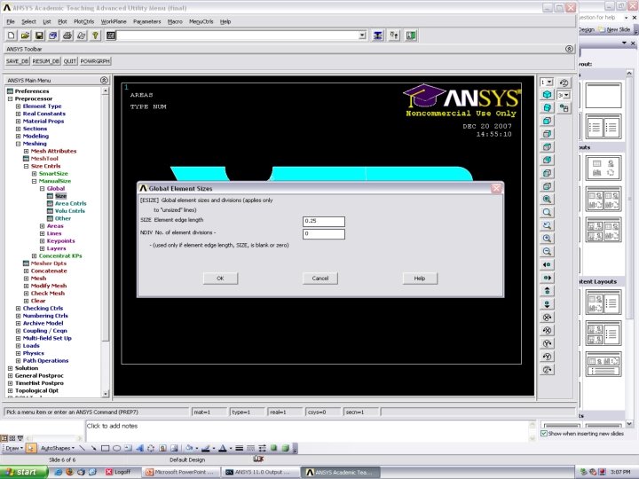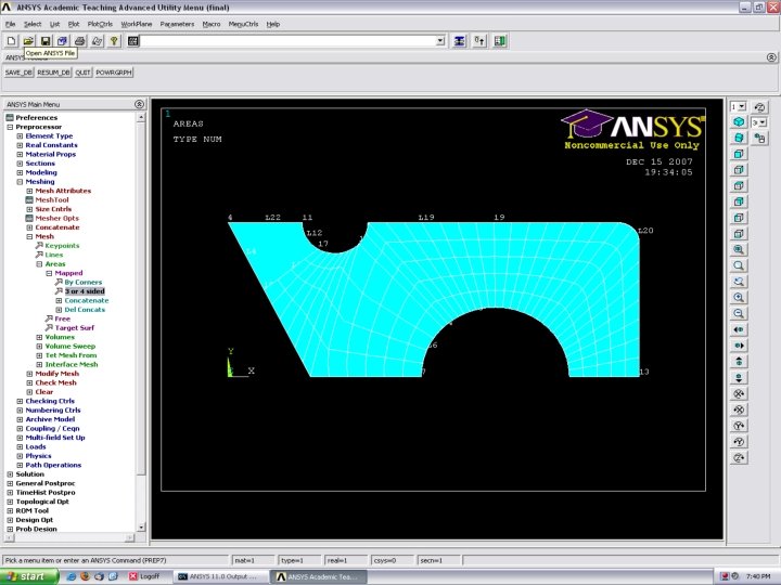 Mapped Meshing • Create the Geometry • Concatenate Lines • Mesh each area separately Meshing>Mesh> Areas>Mapped>3 or 4 sided