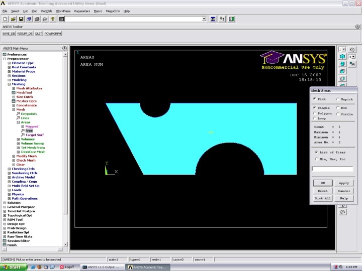 Free Meshing • Create the Geometry • Define Mesh Size • Free Mesh >Meshing>Mesh> Areas>Free>Select the Area to Mesh