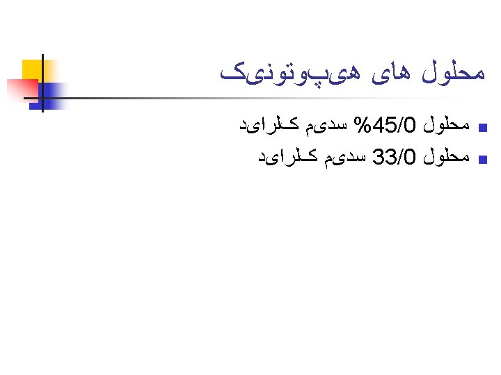 Crystalloids: • Isotonic crystalloids - Lactated Ringer’s, 0. 9% Na. Cl - only 25% remain intravascularly • Hypertonic saline solutions - 3% Na. Cl • Hypotonic solutions - D 5 W, 0. 45% Na. Cl - less than 10% remain intravascularly, inadequate for fluid resuscitation
