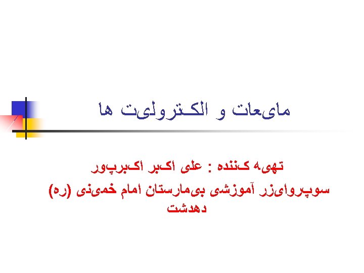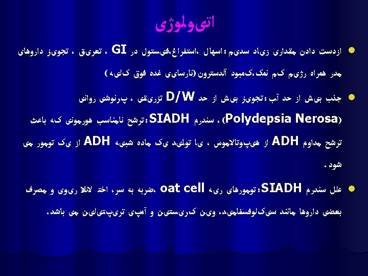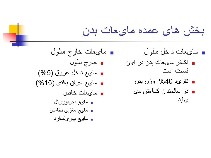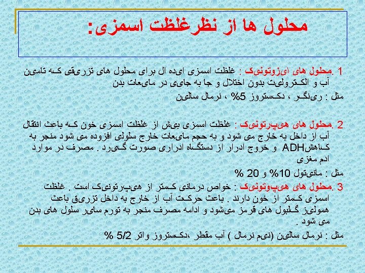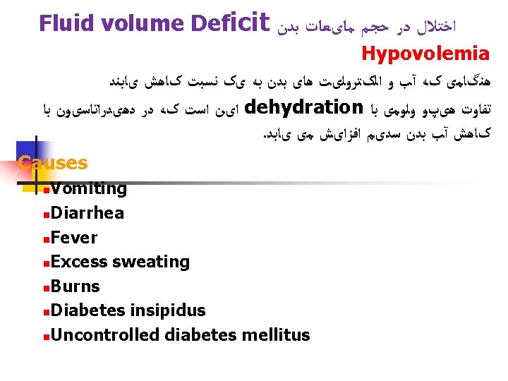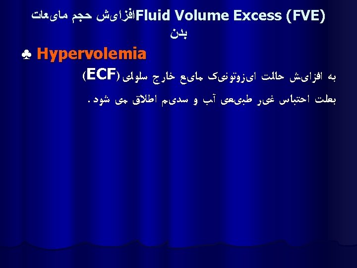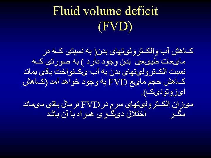 ﺍﺧﺘﻼﻝ ﺩﺭ ﺣﺠﻢ ﻣﺎیﻌﺎﺕ ﺑﺪﻥ 1. Fluid volume deficit 2. Fluid volume excess