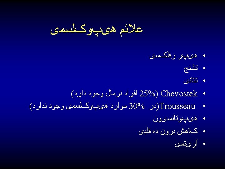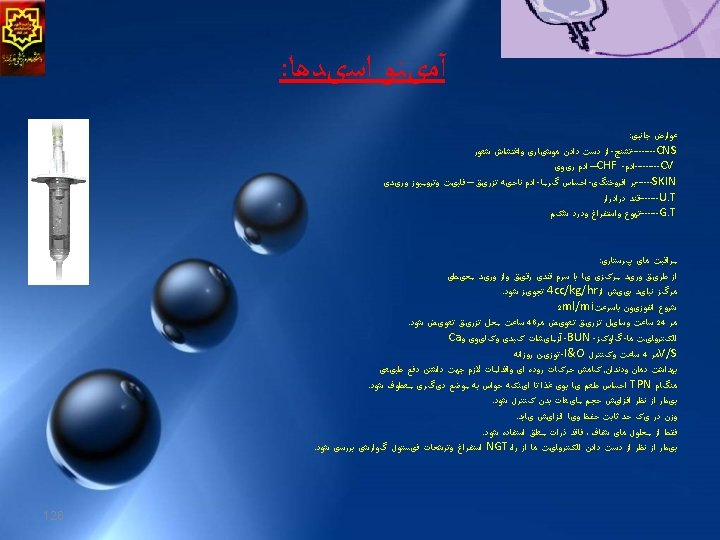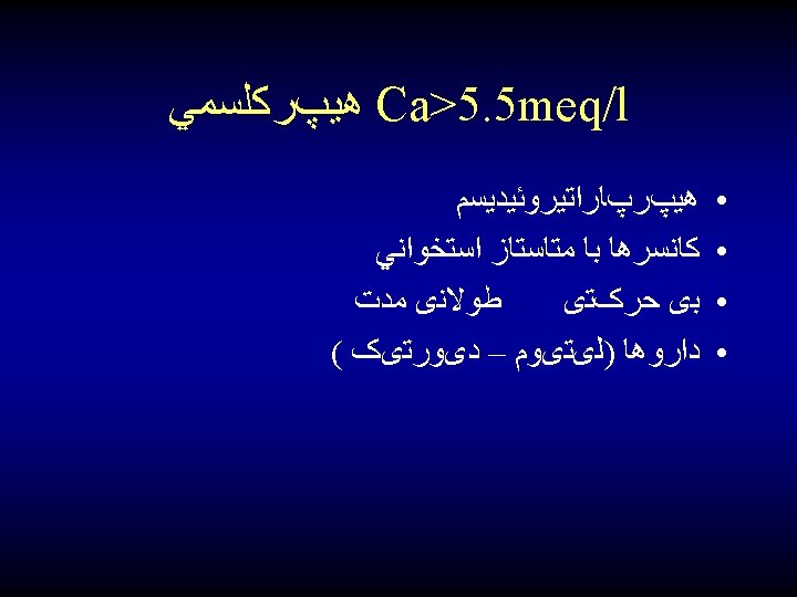 ﻋﻼﺋﻢ GI Cardiovascular Renal (polyuria) CNS • •