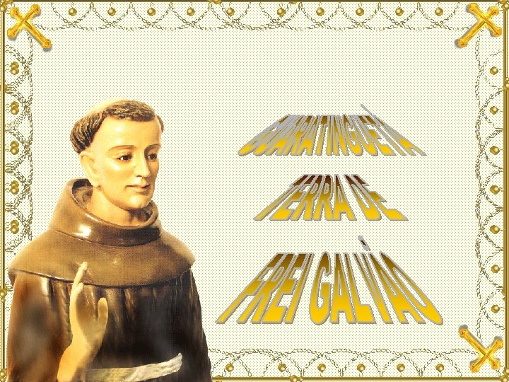 FORMATAÇÃO: Anna Rebello MÚSICA: Hino a Frei Galvão (Celso Galvão) Agradeço a ajuda do meu Professor Cristian Fontes, COM ORGULHO DEDICO ESTE SLIDE A TODOS OS GUARATINGUETAENSES DE CORAÇÃO E ALMA E TAMBÉM A COMUNIDADE CATÓLICA BRASILEIRA, PELO NOSSO PRIMEIRO SANTO FREI ANTONIO DE SANT´ANNA GALVÃO Nossa Senhora da Imaculada Conceição FREI GALVÃO
