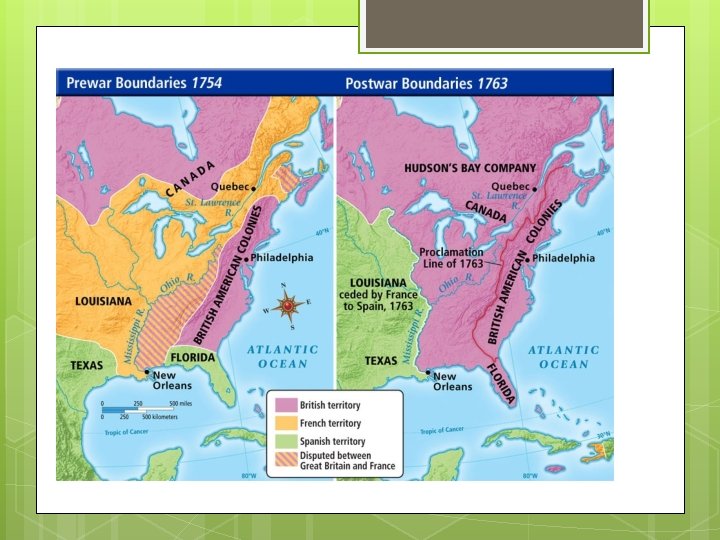 Consequences War Ends in 1763 with the Treaty of Paris France and Spain cede all territory in N. America up to the Mississippi