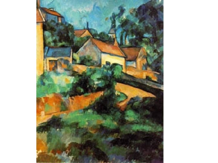 Post-Impressionism • Paul Cezanne (1839 -1906) • Cezanne's decision to defy the laws of perspective (and gravity) will greatly influence Picasso and Braque's invention of cubism (look especially at his landscapes, below, to see this relationship). • With Cezanne, it becomes clear that art is not merely a matter of copying what one sees. The modern artist's mission becomes the purpose of re-creating the world to fit the needs of art. • Mount St. Victoire, 1885 -7