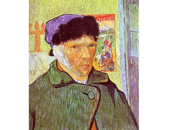 Post-Impressionism • He invites a fellow artist, Gauguin, to move in with him. • Together, they paint, drink in taverns, fight, and eventually the friendship is terminated when Van Gogh, in one of his fits of emotional instability, threatens his friend with a knife. • When Gauguin gives him an angry look, Vincent meekly turns away, then later slashes his own ear. • He recuperates, but realizing he is a threat to himself (and possibly others), admits himself to a mental hospital.