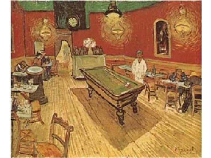 Post-Impressionism • The Night Cafe, 1888 • Van Gogh commented to his brother Theo that he made the walls red because this was a place that, “one could go mad!”