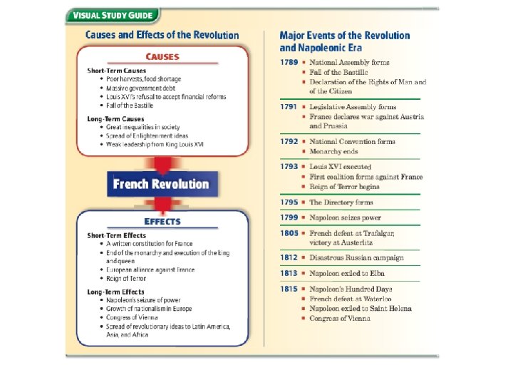 Quiz • Choose 4 – – – First Estate Second Estate Third Estate Louis XVI Marie Antoinette Maximilien Robespierre • Choose 1 – What were the causes of the French Revolution? – What was the order of events in the French Revolution? – What was the Reign of Terror and how did it end?