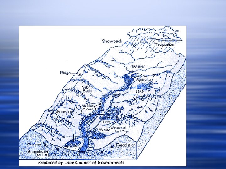 The 3 zones of a watershed Floodplain zone Streams join into wider, deeper rivers Broad, flat land Warmer, less O 2 More turbid More runoff