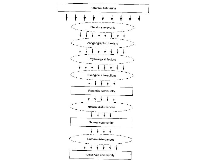 Temperate streams – Factors affecting fish distribution • Biological Factors – Predator-prey interactions – Competitive interactions • Differential resource exploitation • Aggressive behaviors • Biogeographic Factors