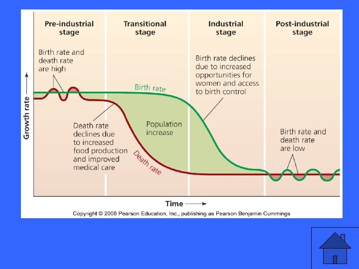 a. Total fertility rate (TFR) b. Demographic transition *Stable preindustrial state of high birth and death rates change to a stable post-industrial state of low birth and death rates.