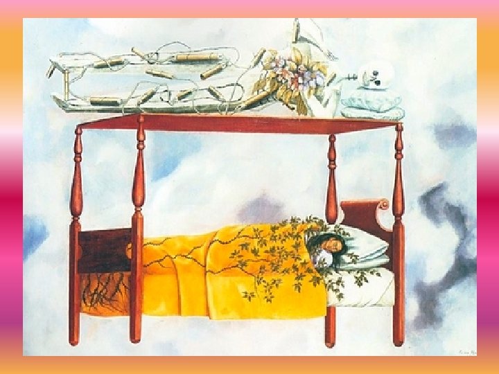 • Kahlo’s life was one of pain and suffering. • At the age of six she contracted Polio which left her with one leg thinner than the other and one of her feet deformed.