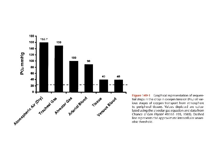 The fact is…. • Tissues are normally hypoxic • Concentration of dissolved oxygen in tissue is determined by the PO 2 in the tissues and the solubility coefficient of oxygen in water • Total volume of oxygen in the tissues of human body = 13 ml
