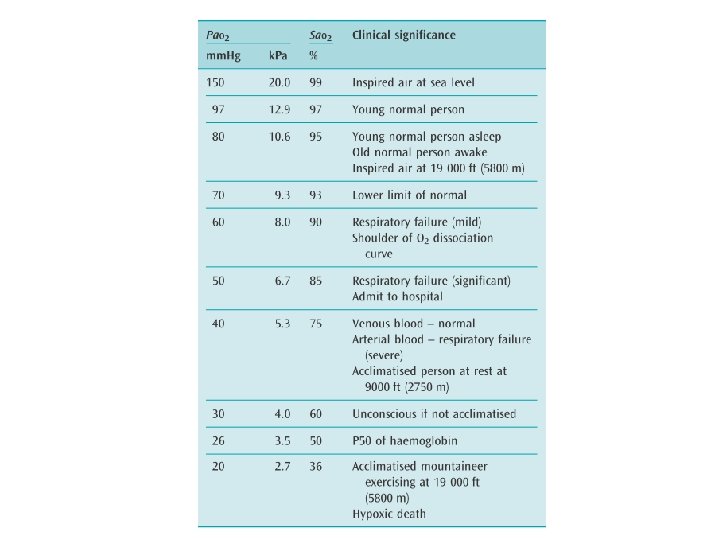 Hemoglobin binding • Oxygen poorly soluble in water • Hb-O 2 dissociation curve is not linear • P 50 = the Pa. O 2 at which 50% Hb is saturated