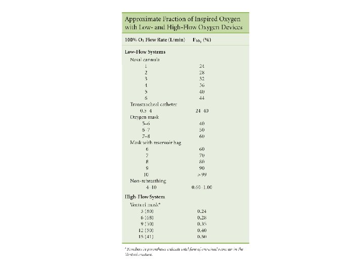 Variable performance systems • Small reservoirs and low gas flow (2 -15 L/min) • Shallow breathing less entrained room air, higher Fi. O 2 • Exhalation time variable filling of devices’ inspiratory reservoir • Nasal cannula • Oxygen mask • Tracheostomy mask
